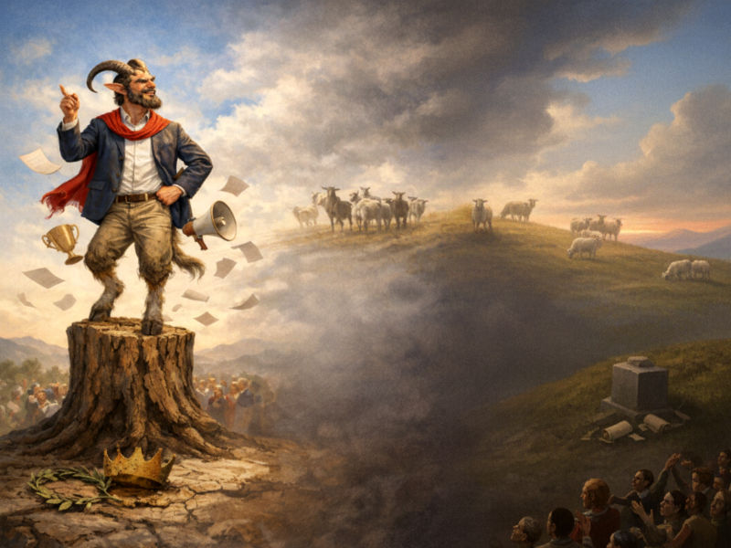 এই উপলব্ধির পর থেকে সে হঠাৎ আবিষ্কার করে যে তার মতামত অমোঘ, তার রুচি অতুলনীয়, এবং পৃথিবীর বাকি সবাই মূলত তার জ্ঞানের অপেক্ষায় ক্ষুদ্র, তুচ্ছ, অতিনগণ্য। এরপর থেকে সে আর মানুষের মতো আচরণ করে না; সে আচরণ করে একজন রাজকীয় ছাগলের মতো। যেদিকে খুশি যায়, যা খুশি বলে, যা খুশি করে, যা খুশি তাতে মুখ লাগায়, যা খুশি তাই খায়, আর কেউ সামান্য বাধা দিলে উলটো শিং নাড়িয়ে তেড়ে আসে।
